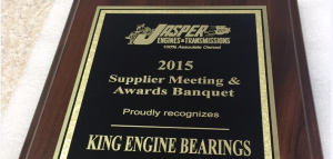 Cedar Grove, N.J. –King Engine Bearings is proud to have received their third consecutive award from Jasper Engines and Transmissions, North America’s largest remanufacturer of gasoline and diesel powertrain and drivetrain components. In 2012 King was awarded with Jasper’s Outstanding Service award, and now they follow that up with their second consecutive Overall Quality award. For 2014, only five suppliers were awarded with this honor, based on Jasper’s stringent requirements.